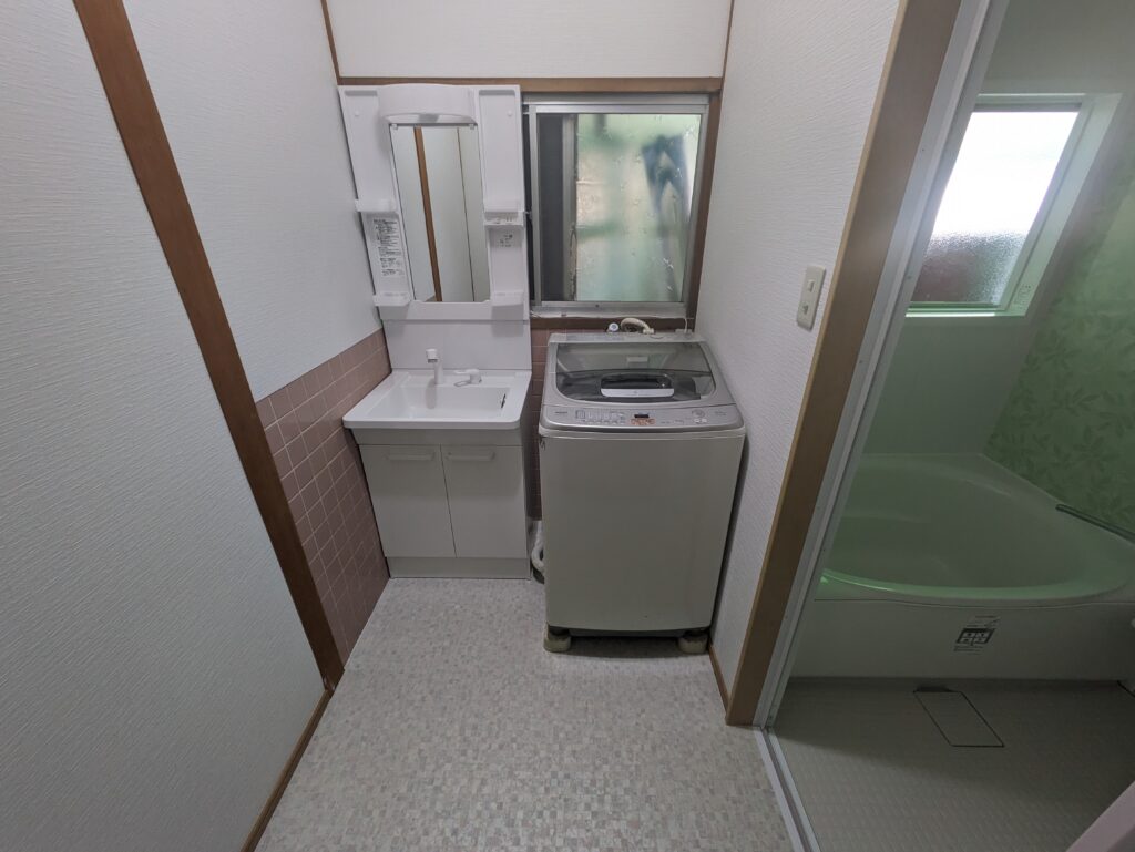 洗面所側は、床は下地から撤去しクッションフロア、壁天井はクロスを貼り替えていきます。